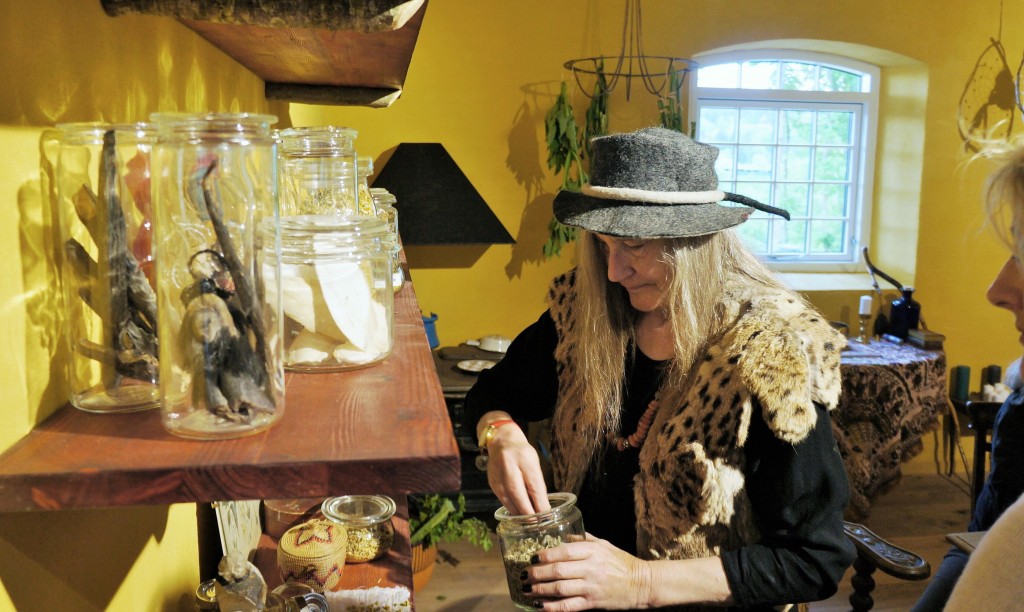 Heksen Dannie Druehyld i sit nyåbnede værksted i centret (foto Bertil Mortensen)