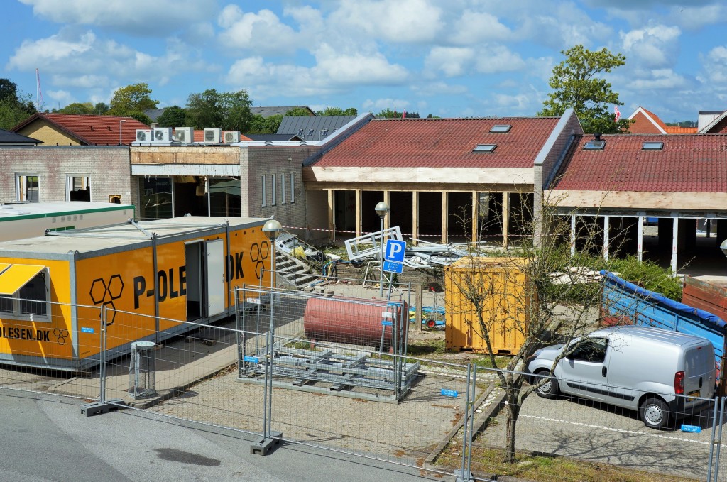 Nedrivningen af det gamle rådhus i Støvring er i gang (foto Bertil Mortensen)